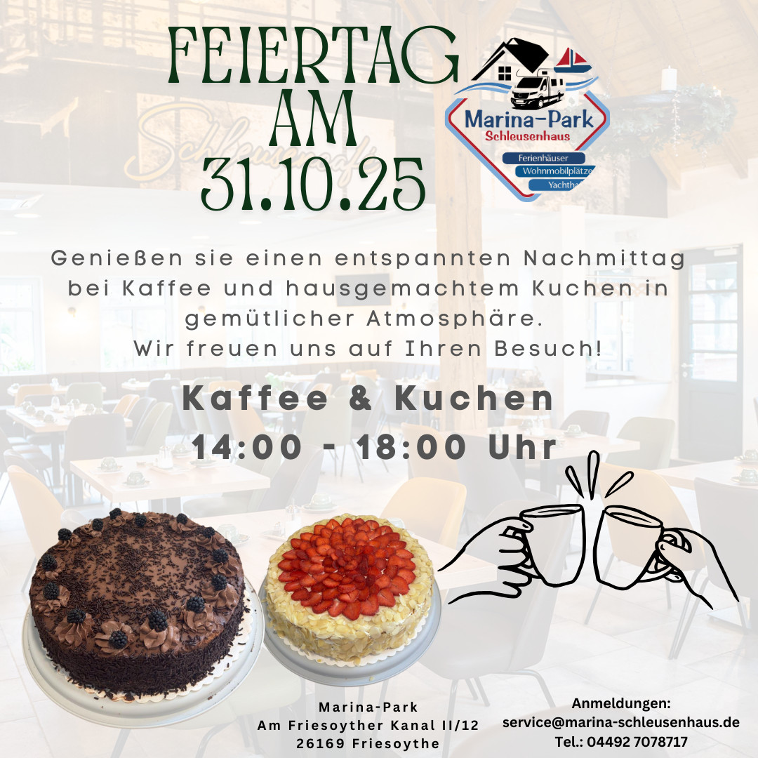 - Nachmittagskaffee und Kuchen: Samstag von 14:00 – 16:00 Uhr und Sonntag von 14:00 - 18:00 Uhr